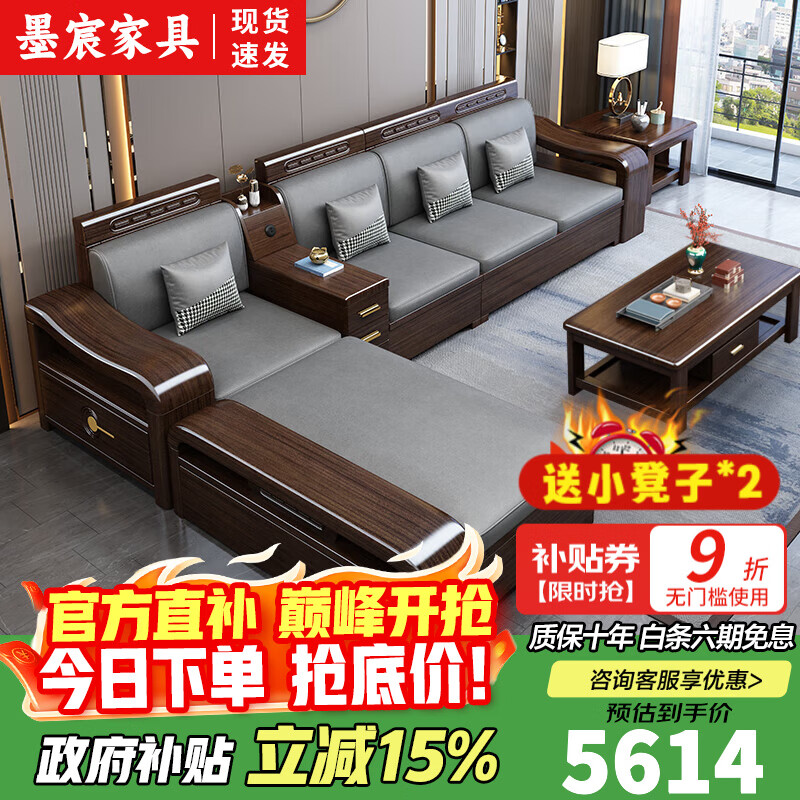 墨宸沙发 紫金檀木实木沙发新中式客厅大小户型冬夏两用转角储物家具 1+2+3组合+长茶几+方几+电视柜