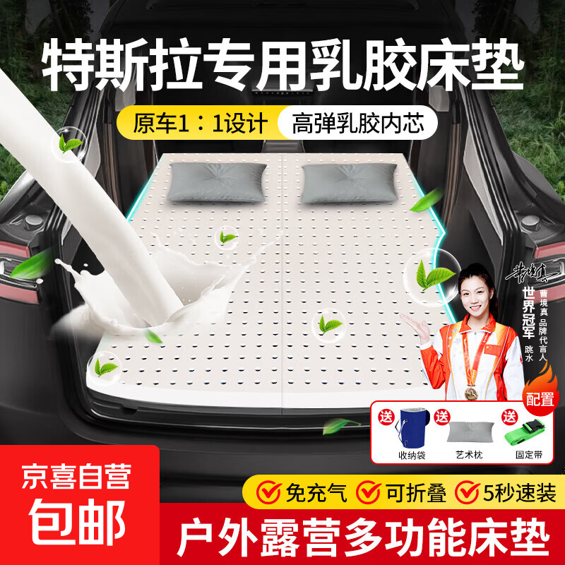 【奥运代言】天然乳胶多功能便携式车上睡觉神器午休垫露营 【双人款】适用Model Y 【天然乳胶】高弹折叠易收纳