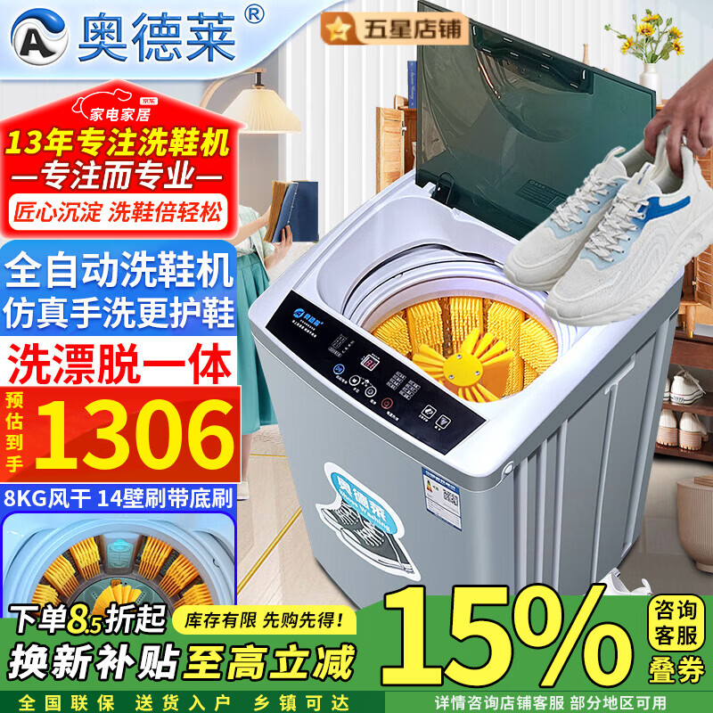 奥德莱(AOD)【换新补贴15%】洗鞋机全自动洗脱一体家用风干烘干全自动刷鞋机滚筒洗鞋子擦鞋器洗鞋神器一体机 8kg全自动-家用风干-14壁刷带底刷波轮