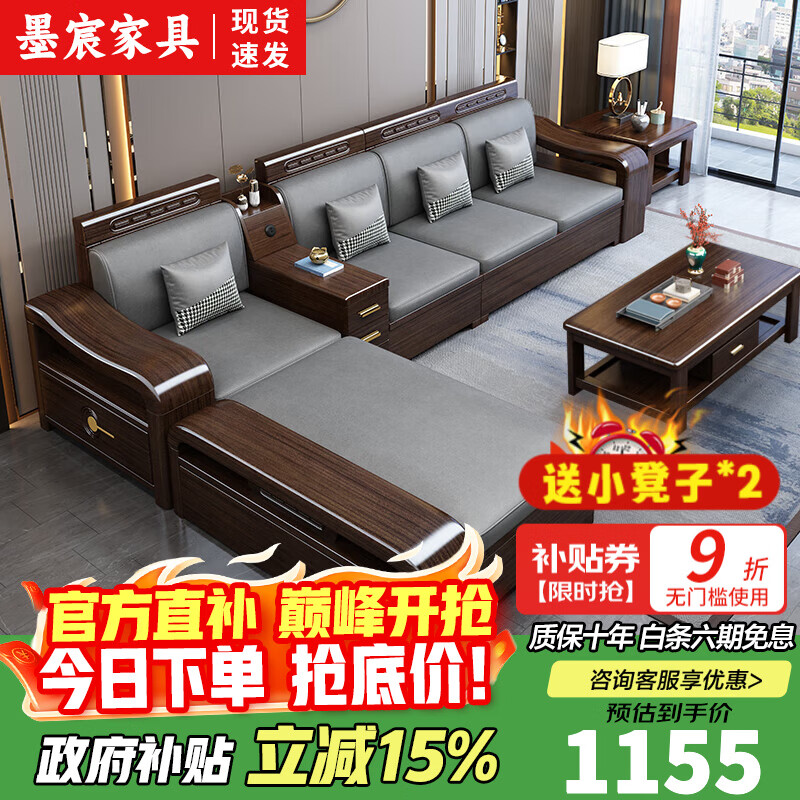 墨宸沙发 紫金檀木实木沙发新中式客厅大小户型冬夏两用转角储物家具 双人位