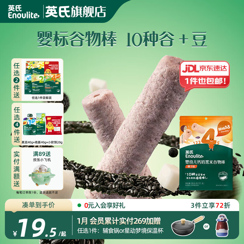 英氏【4阶专区】婴幼儿零辅食 泡芙米饼干奶酪 12-18月龄宝宝零食 黑米谷物棒椰子味