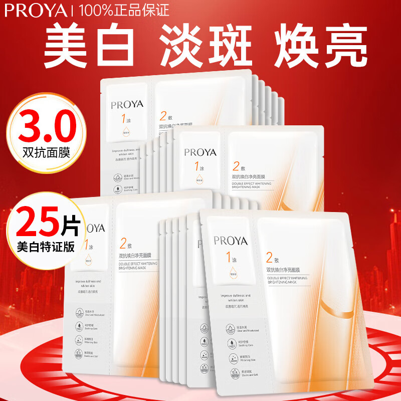 珀莱雅(PROYA)双抗美白面膜特证版补水保湿提拉紧致弹润透亮改善暗黄面膜送女友 25片
