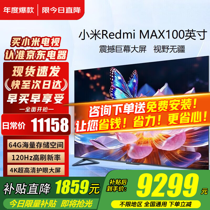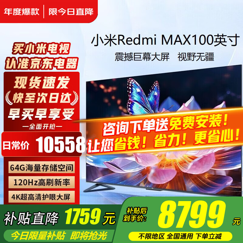 小米(MI)电视100/90英寸MAX100巨屏大屏幕4K智能液晶显示屏会议游戏平板电视机大尺寸办公红米彩电以旧换新 100英寸 【省心包安装】MAX100电视+上门安装