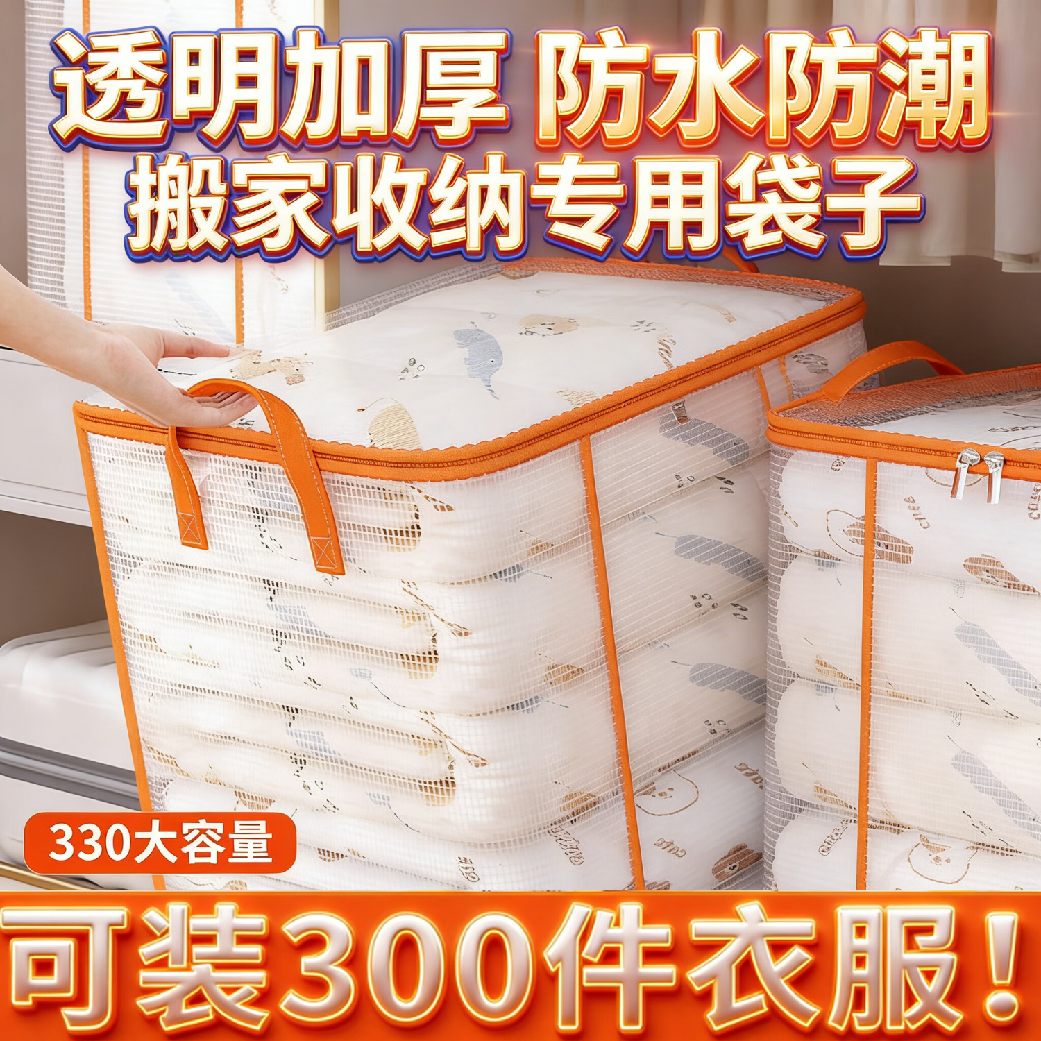 苑美居衣服收纳箱超大容量搬家打包袋子装棉被物神器家用真空压缩整理筐 升级加厚-大号【50*35*46cm】