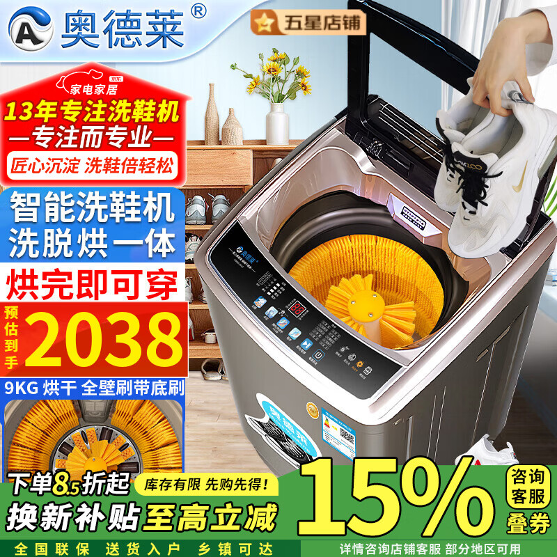 奥德莱(AOD)【换新补贴15%】洗鞋机全自动洗脱一体家用风干烘干全自动刷鞋机滚筒洗鞋子擦鞋器洗鞋神器一体机 9kg全自动-家用烘干-全壁刷+底刷波轮