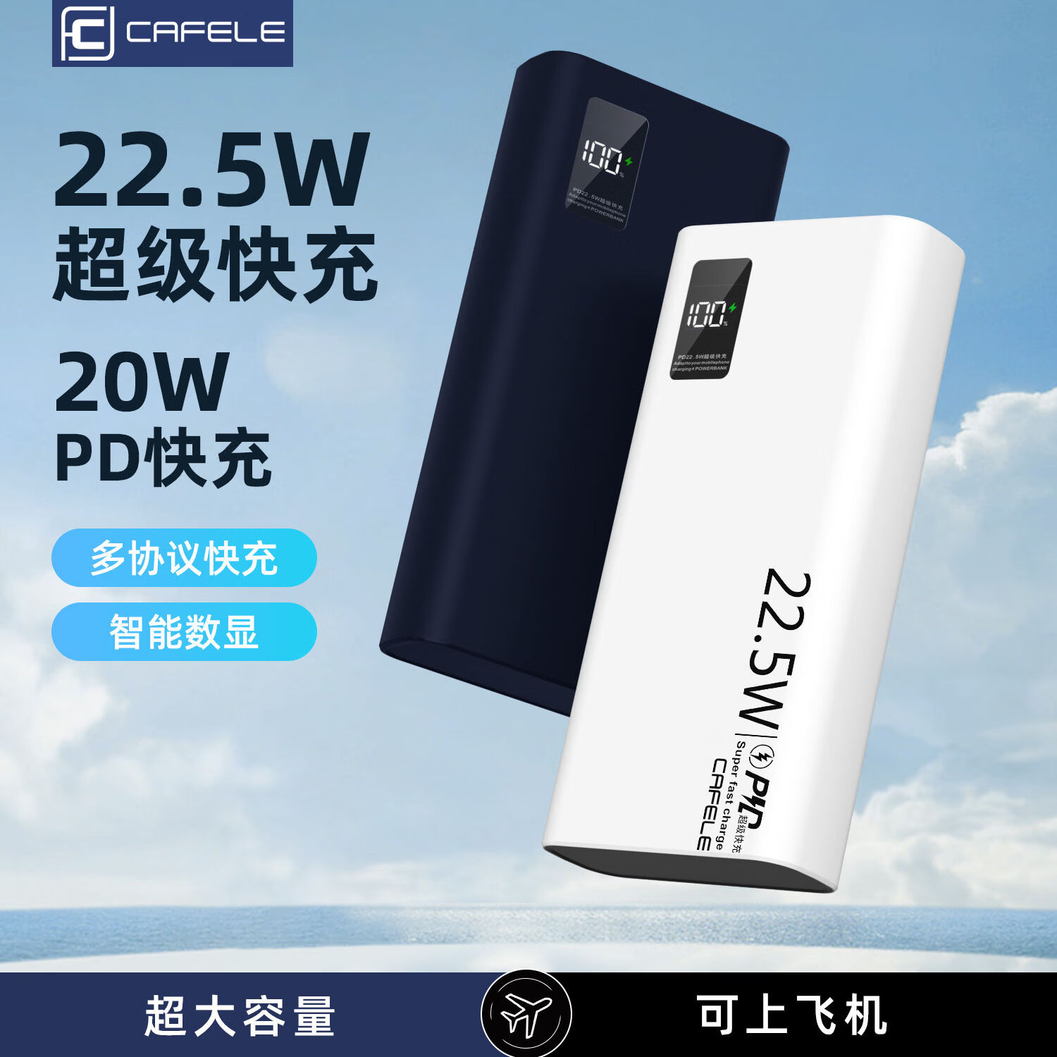 威顿【80000M顶配丨新国家3C认证】充电宝66W超级快充大容量可上飞机自带线移动电源20000毫安小巧便携 白色 国家3C认证丨可上飞机丨自带四线