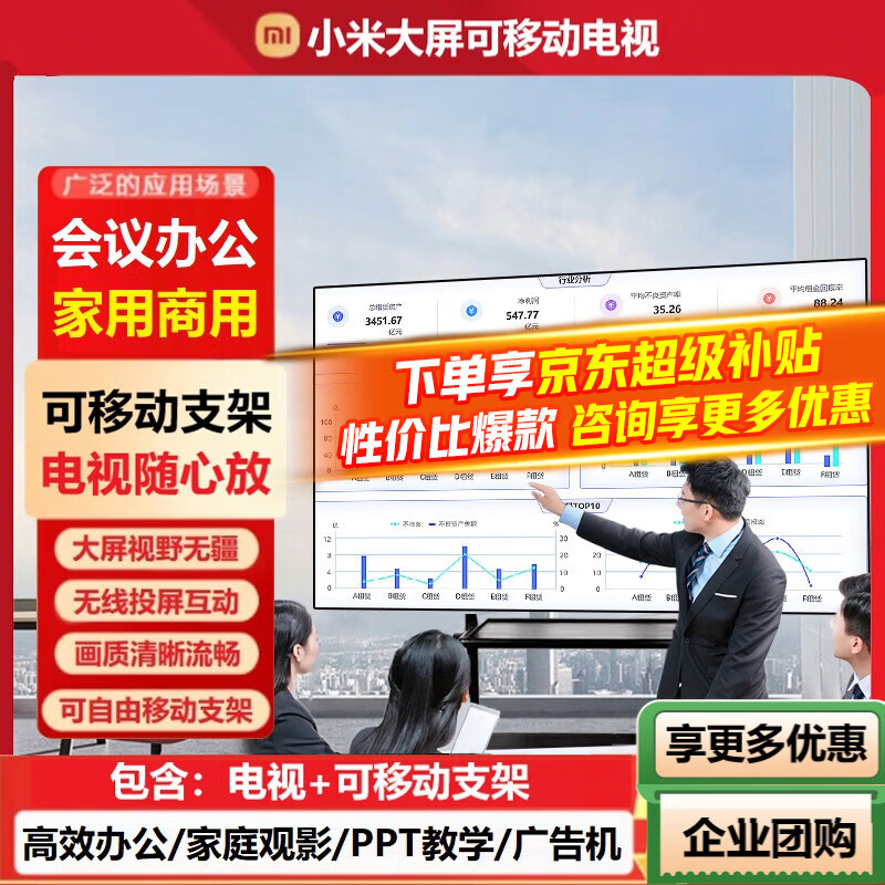 小米(MI)电视100/90英寸MAX100巨屏大屏幕4K智能液晶显示屏会议游戏平板电视机大尺寸办公红米彩电以旧换新 100英寸 【可移动电视】MAX100电视+可移动支架