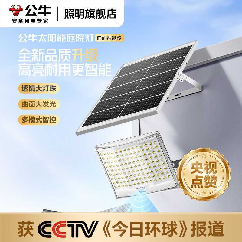 公牛(BULL)太阳能户外照明灯新款大功率庭院灯农村用天黑自动亮防水led路灯 庭院灯曲面智能款+180W型+雷达+照约262m²
