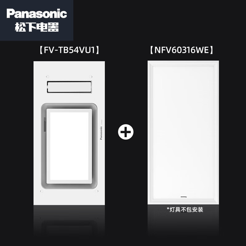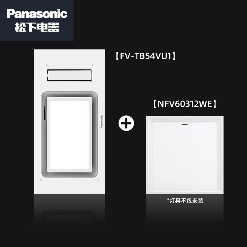 松下浴霸暖风照明排气一体集成吊顶暖风机浴室卫生间石膏板超薄取暖器 照明套装A|FV-TB54VU1+18瓦方灯