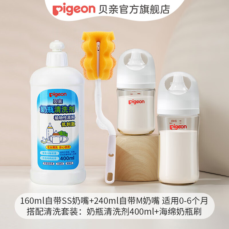 贝亲奶瓶 婴儿奶瓶 新生儿防胀气奶瓶 宽口径玻璃奶瓶【渠道专享】 160ml +240ml+清洗组 玻璃奶瓶