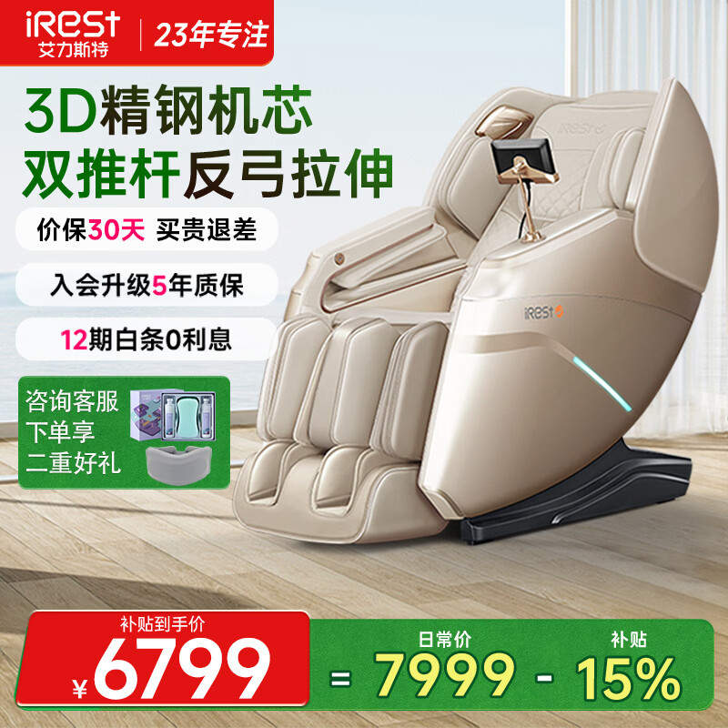 艾力斯特(iRest)S730pro/S730按摩椅家用2026全身太空舱全自动智能零重力豪华电动多功能按摩理疗爸爸妈妈生日礼物 S730香槟金