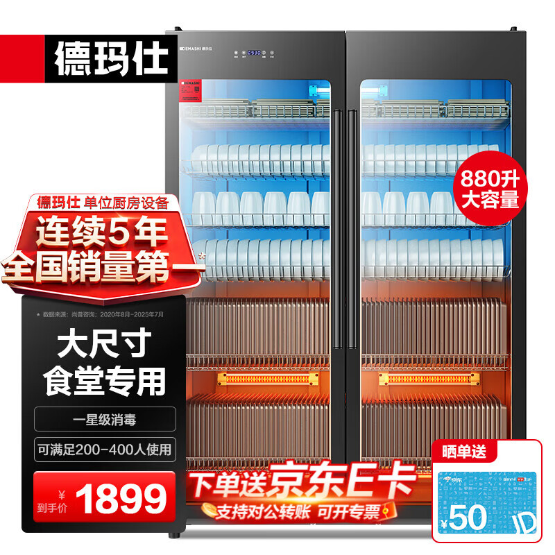 德玛仕(DEMASHI)商用消毒柜 立式消毒碗柜消毒柜家用酒杯茶杯餐具碗筷家用厨房紫外线消毒柜大容量立式消毒柜 智能触控丨对开门880升丨供200-400人