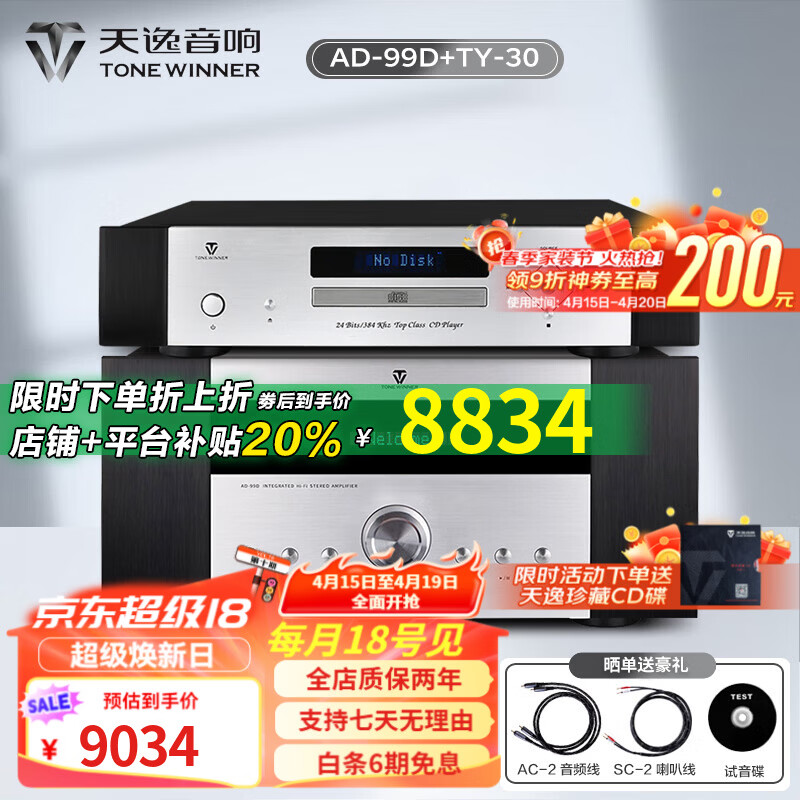 天逸(Winner)AD-99D多功能超甲类发烧数字蓝牙HiFi功放机 AD-99D搭配TY-30CD