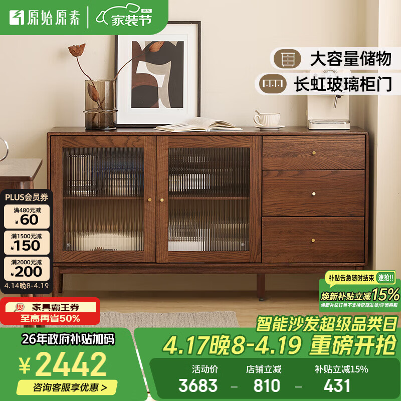 原始原素实木餐边柜橡木酒柜北欧简约餐厅储物柜碗柜茶水柜B3142 餐边柜-1500*400*810mm 黑胡桃色