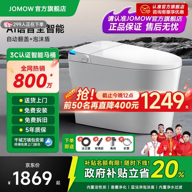 JOMOW智能马桶一体机无水压限制自动翻盖语音泡沫盾香薰轻音冲水坐便器 861顶配【自动翻盖+前置妇洗+AI语音+手机智控】 250/300/350/400mm 下单请备注