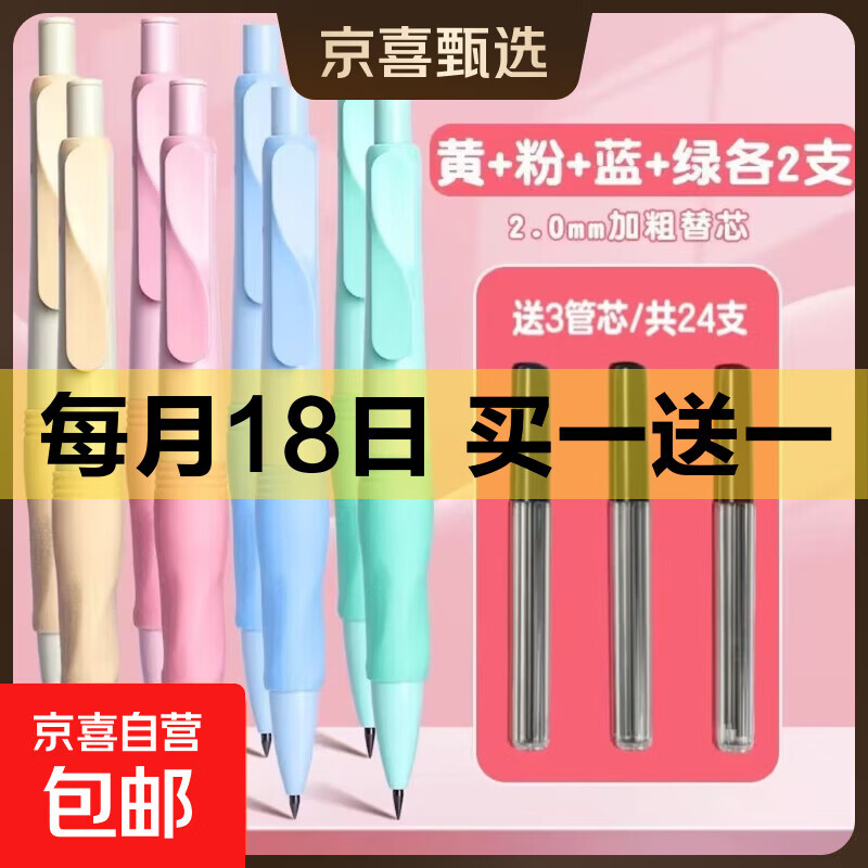正姿自动铅笔小学生专用一年级活动自动笔儿童2点0高颜值初中生2b铅笔按动不用削的初学者笔芯铅芯 【四色各2】8支+6盒(送48支替芯)