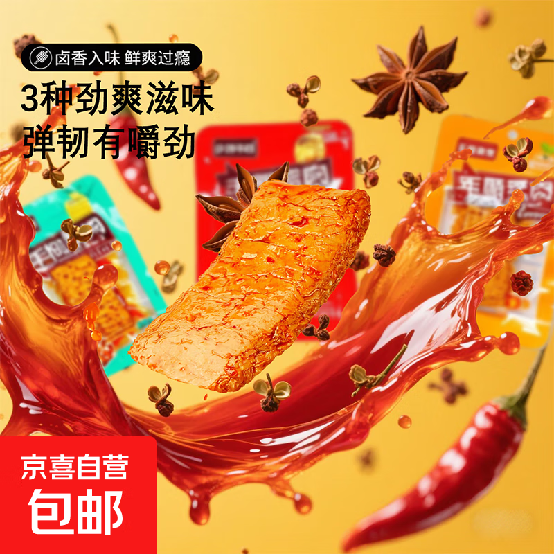 【实惠】小猫驾到手撕素肉辣条大豆制品豆干休闲零食 60包【分享装】
