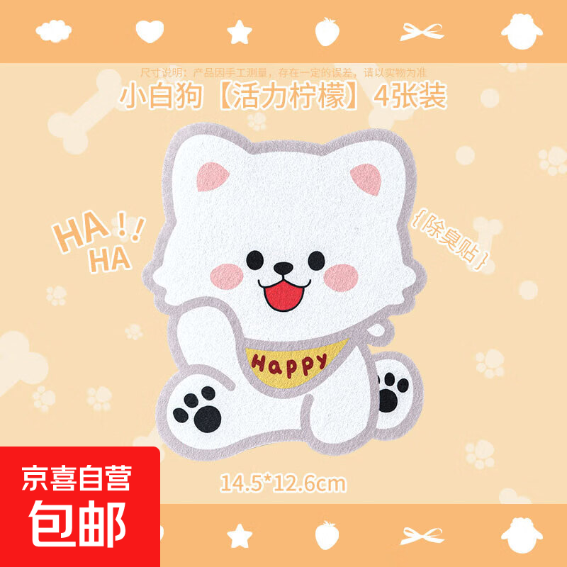 浴室卡通马桶贴卫生间除臭贴清香家用厕所香薰贴画装饰衣柜除异味 【4张装】小白狗(活力柠檬) 无规格
