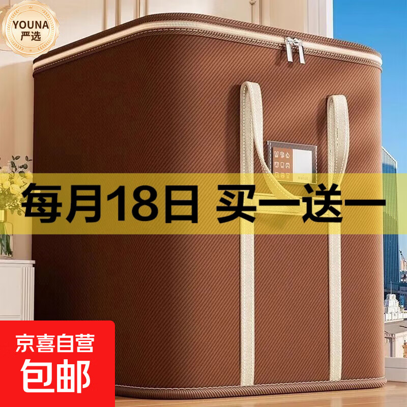 衣服收纳袋搬家打包袋家用被子专用收纳箱子棉被大容量衣物大袋子 米色-大号110#(33*44*25) 1个装
