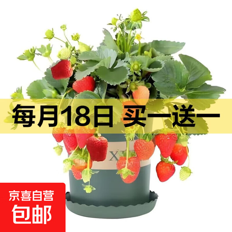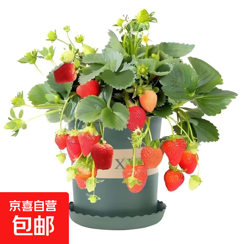 奶油红颜草莓苗加仑盆四季种植全国适用0.5加仑盆带盆带土栽好 越秀草莓苗+肥料 加仑盆【2盆】高10cm直径10cm