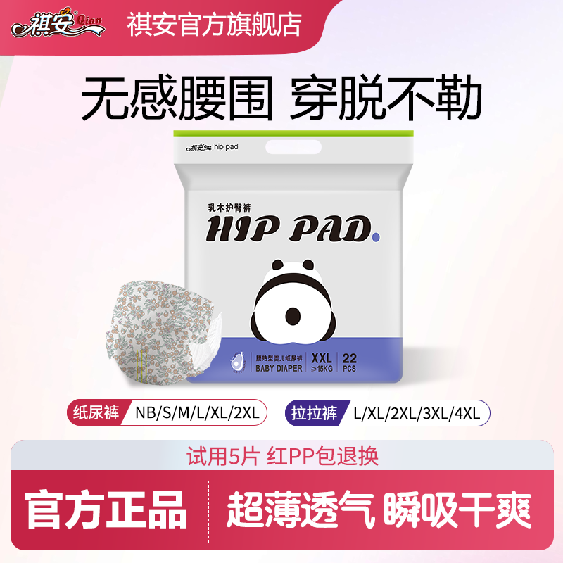 祺安T1熊猫乳木果油宝宝护臀系列超薄透气新生儿尿裤拉拉裤成长裤 2包发货拉拉裤XXXXL码共32片【更优惠】