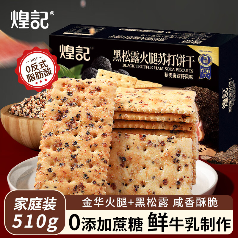 煌记黑松露火腿苏打饼干薄脆早餐代餐0蔗糖办公室孕妇零食休闲下午茶 黑松露火腿苏打饼干510g家庭装