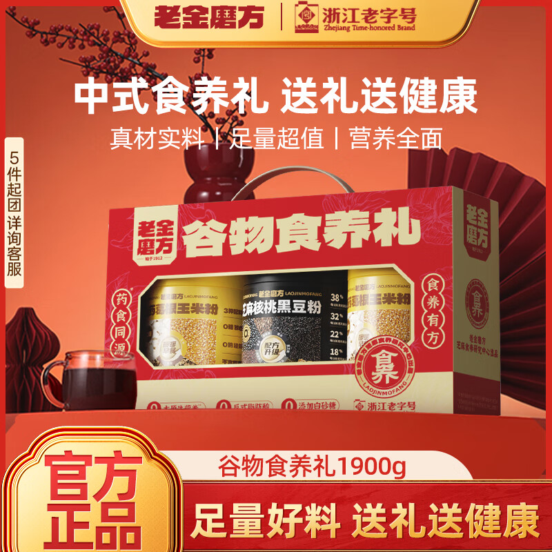 老金磨方黑芝麻糊礼盒送礼过节礼品走亲戚长辈礼物滋补圣诞 【新年安康】臻享谷物礼1.9kg超值加量黑黄黄
