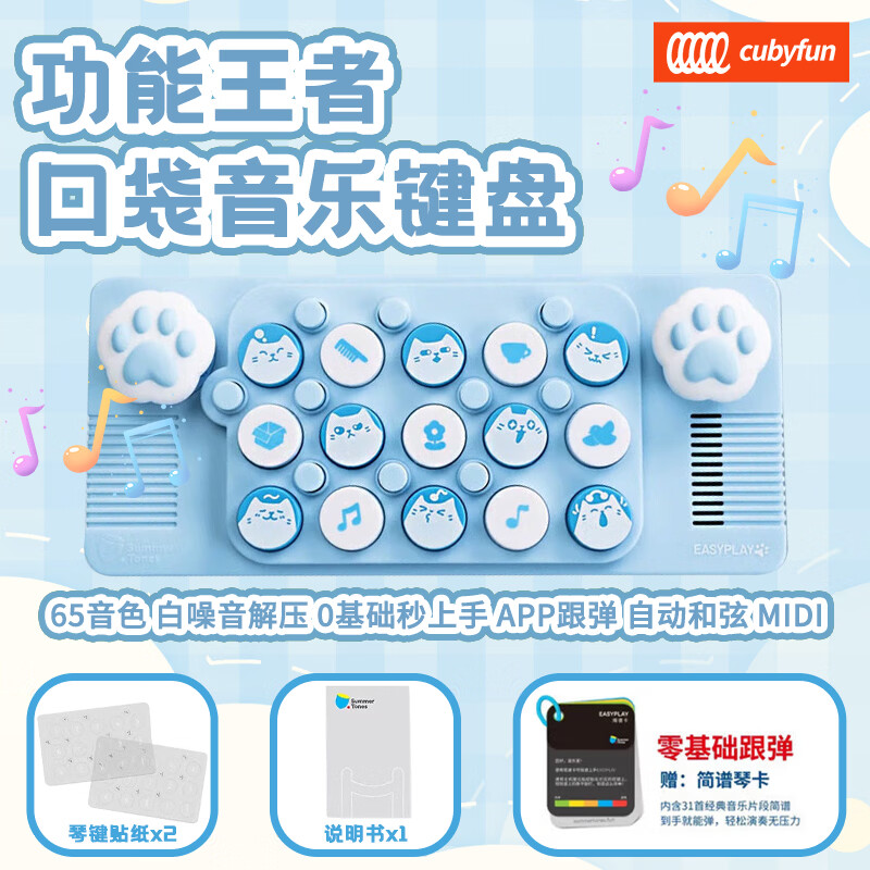 cubyfun【官方正品】口袋音乐键盘琴光遇电子琴玩具MIDI键盘乐器礼物 25键 蓝喵MEOW PLUS套装