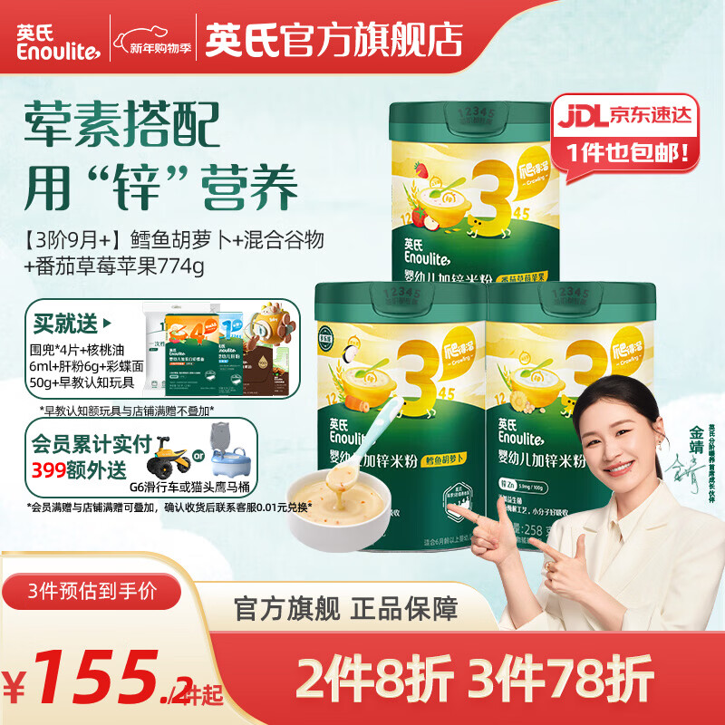 英氏米粉罐装套组婴幼儿高铁米粉6-12个月辅食宝宝营养米糊 【3阶9月+】营养进阶 258g*3罐