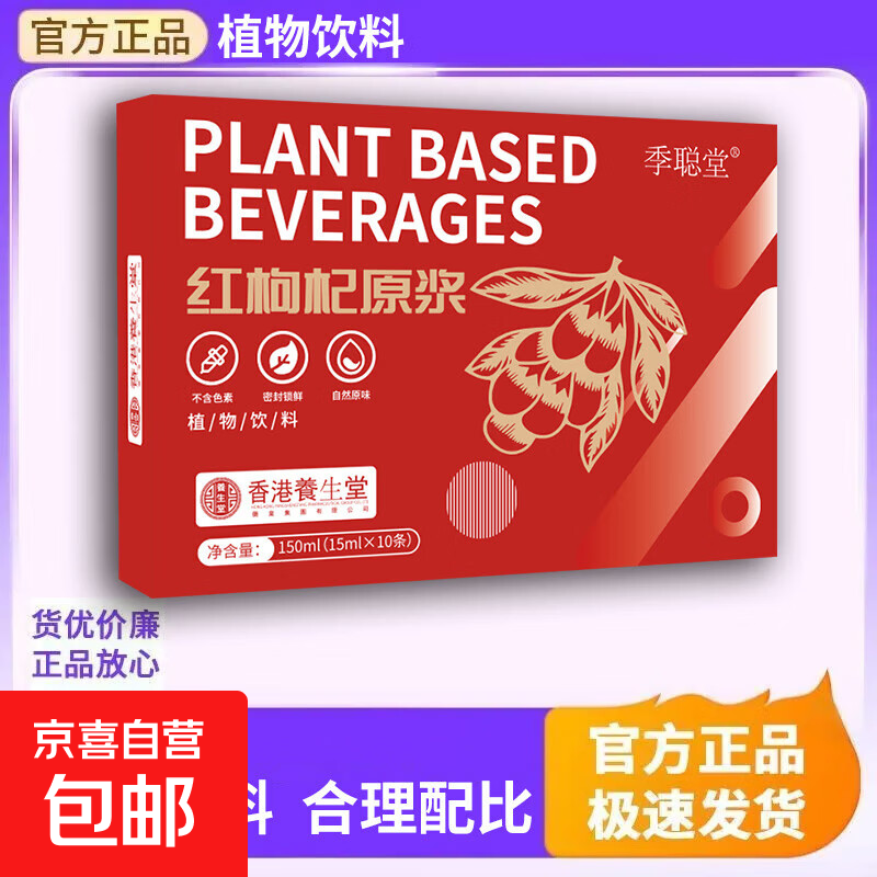 自然原味鲜果鲜榨不含色素植物饮料红黑枸杞原浆 10条*盒装 人参原浆 三盒