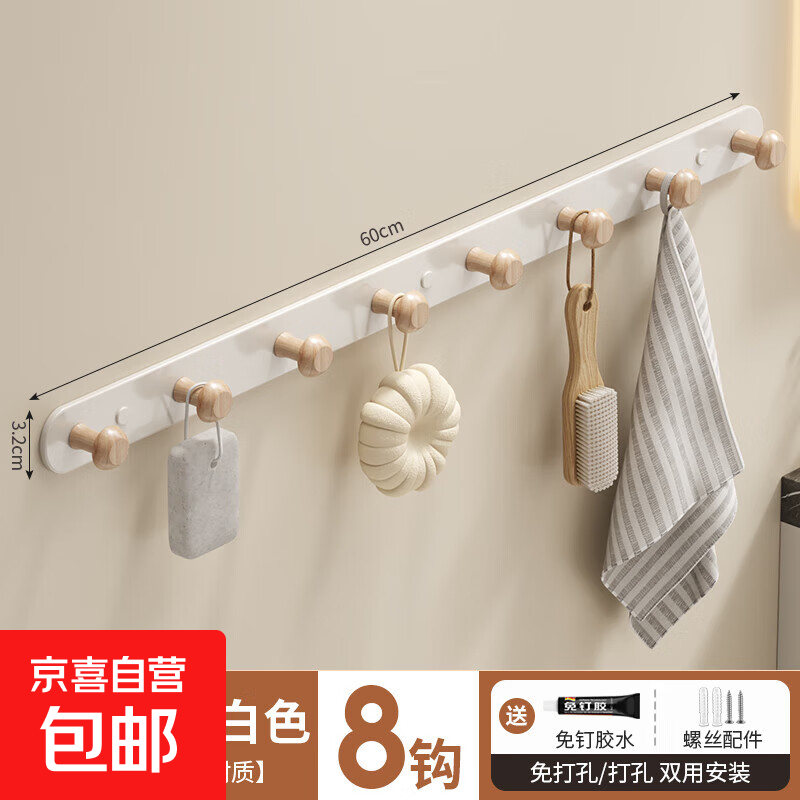 挂钩免打孔强力粘胶墙壁壁挂卫生间浴室厨房门后衣服毛巾衣架墙上 蘑菇头挂钩-奶白款8钩【圆润不伤衣】