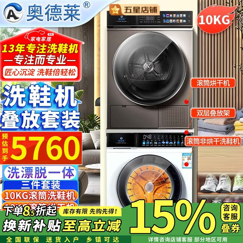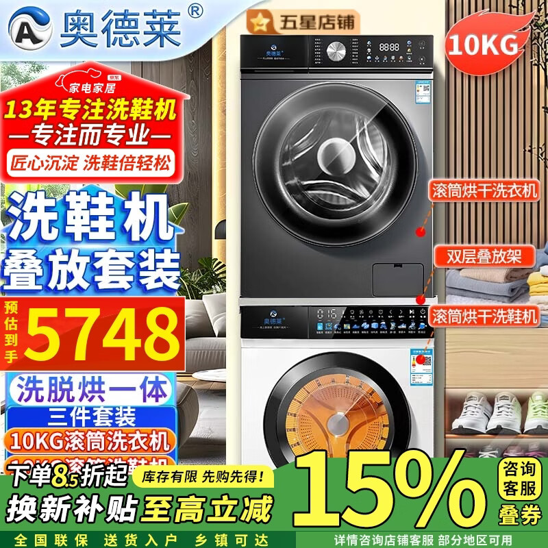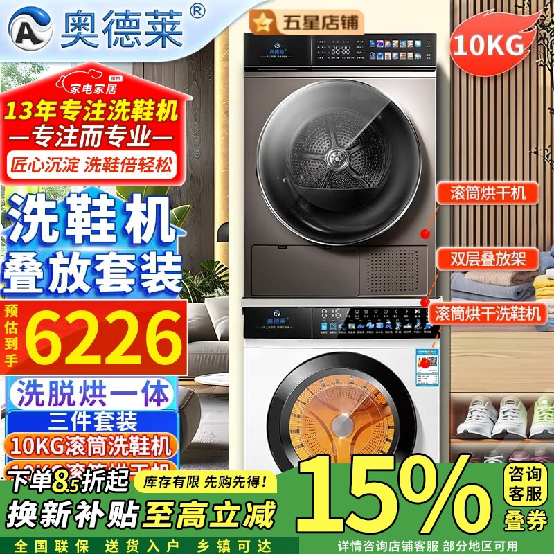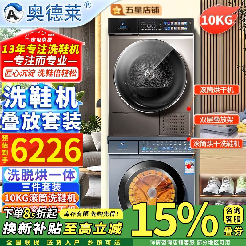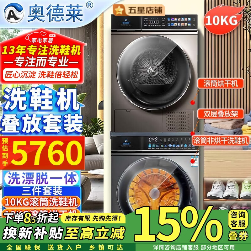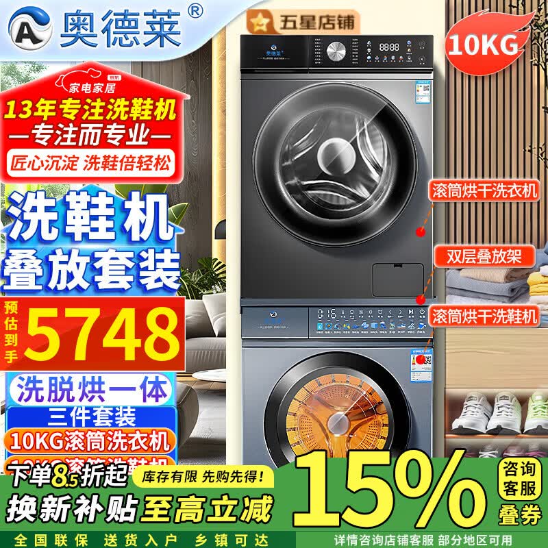 奥德莱(AOD)【补贴85折】滚筒洗鞋机全自动洗脱一体烘干家用刷鞋机洗鞋子神器专业自动洗鞋机洗烘一体免拆鞋带 10KG烘干洗鞋机白色+10KG烘干洗衣机灰色