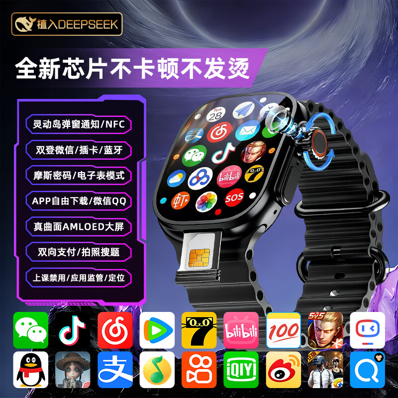 XAA华强北顶配S10Ultra蜂窝版5G全网通插卡智能电话手表微信聊天GPS定位学生初高中生青少年6-18岁 黑Ultra4 性能CPU曲面屏+256G+畅玩不卡 5G全网通+超薄机身+手机级芯片丝滑流畅