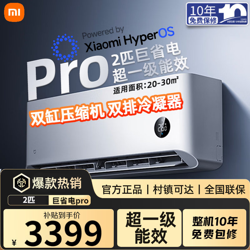 小米空调挂机 1.5匹巨省电Pro 新一级能效变频冷暖 智能自清洁 睡眠款节能壁挂式卧室舒适客厅家用米家 巨省电Pro 2匹 20-30㎡