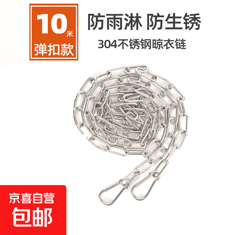 304不锈钢晾衣绳链条室外晒被子挂衣服凉衣链阳台绳子铁链钢丝绳 304晾衣链10米+弹扣2个