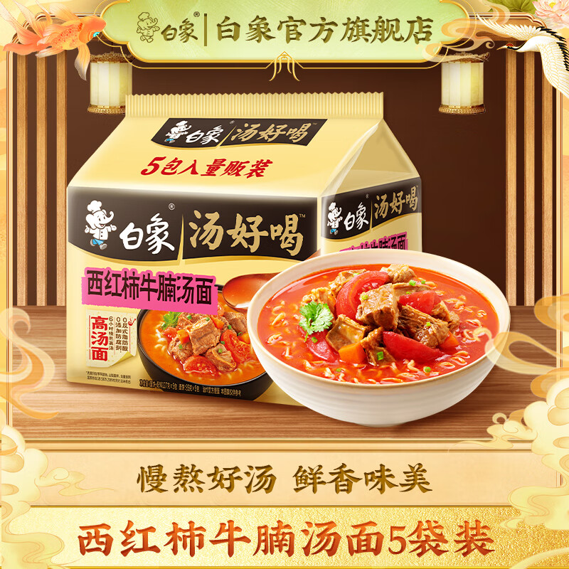 白象 汤好喝方便面老母鸡汤招牌猪骨泡面组合方便速食多口味袋装整箱 汤好喝西红柿牛腩124.5g*5袋