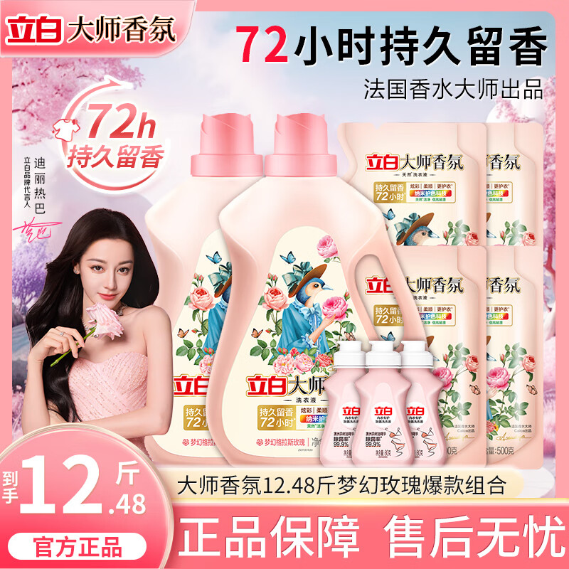 立白大师香氛洗衣液玫瑰花香深层洁净护色持久留香72小时低泡易漂洗 【12.48斤】大师液2kg*2瓶+500g*4袋+内衣洗80g*3瓶