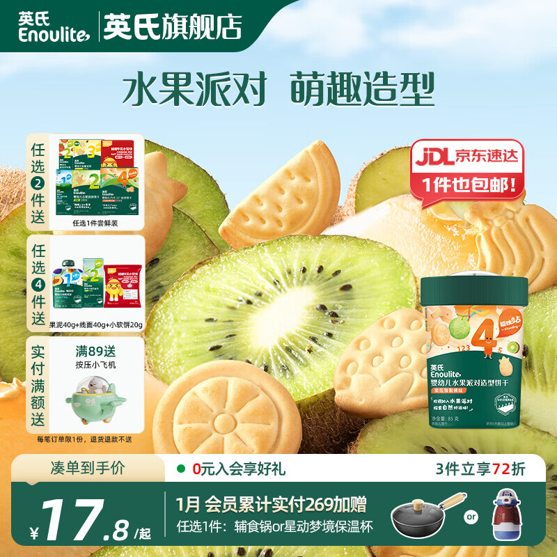 英氏【4阶专区】婴幼儿零辅食 泡芙米饼干奶酪 12-18月龄宝宝零食 水果派对饼干蜜瓜味
