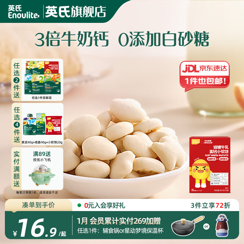 英氏【4阶专区】婴幼儿零辅食 泡芙米饼干奶酪 12-18月龄宝宝零食 忆小口牛乳小软饼