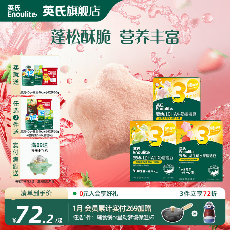 英氏(Engnice)【溶豆专区】溶豆婴幼儿零食水果益生菌DHA牛奶6个月以上 3阶溶豆组合 3种口味