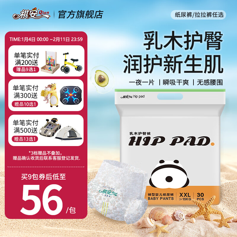 祺安T4熊猫乳木果油宝宝护臀系列超薄透气新生儿尿裤拉拉裤 2包发货拉拉裤XXXL码共36片【更优惠】