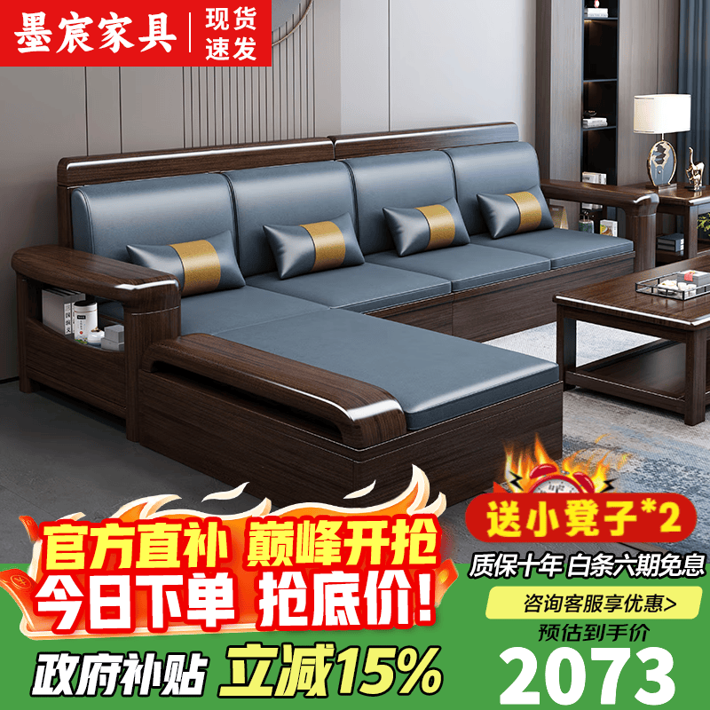墨宸沙发 实木沙发新中式紫金檀木贵妃转角组合冬夏两用储物客厅家具 三人位+贵妃+茶水柜 组合 【普通】棉麻坐垫