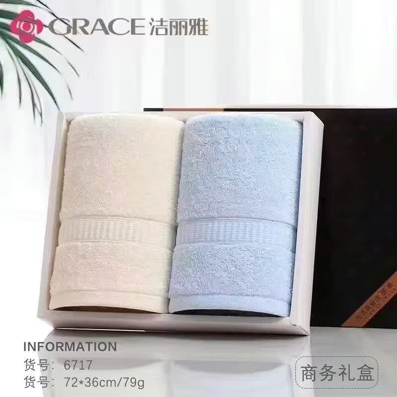 洁丽雅(Grace)毛巾礼盒2条装纯棉全棉毛巾婚庆回礼商务公司团购生日伴手礼批发 6717兰+米商务礼盒+手提袋 全棉