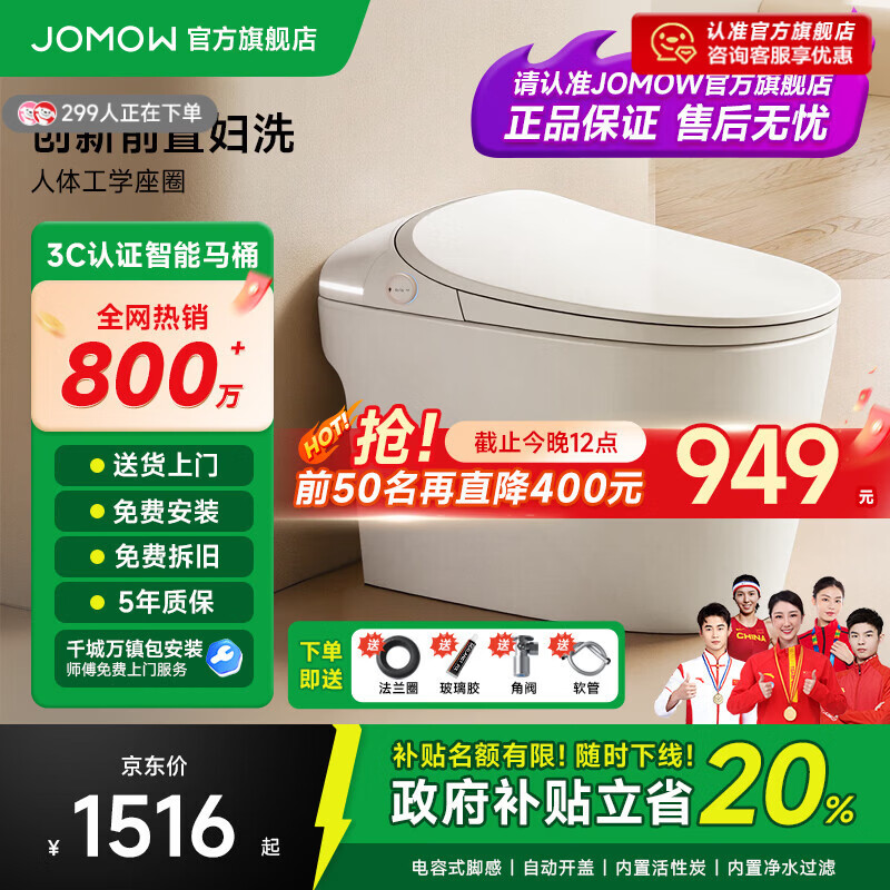 JOMOW智能马桶一体机无水压限制自动翻盖语音泡沫盾香薰轻音冲水坐便器 863顶配【自动翻盖+AI语音+手机智控+UV除菌】 250/300/350/400mm 下单请备注