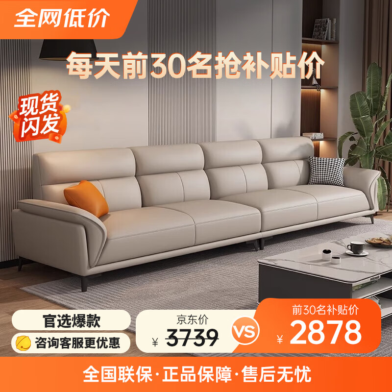 季勤真皮沙发进口头层真牛皮简约现代客厅组合小户型意式极简皮艺沙发 单人+双人+贵妃位3.48米 升级实木框架+海绵座包