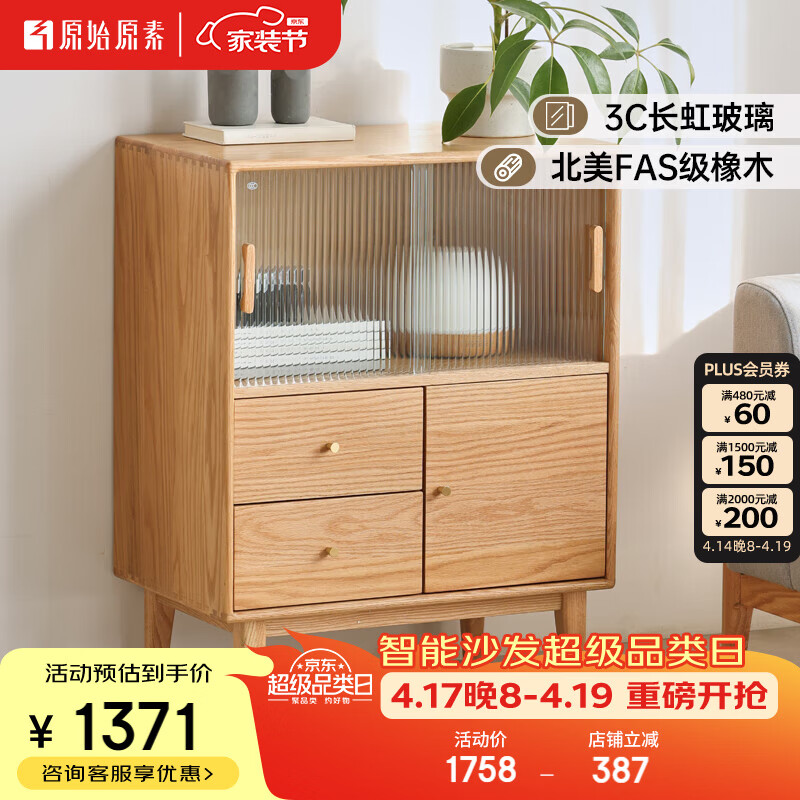 原始原素 实木餐边柜橡木简约客厅茶水柜移门厨房储物柜碗柜F8141 0.65A款餐边柜-原木色F8103