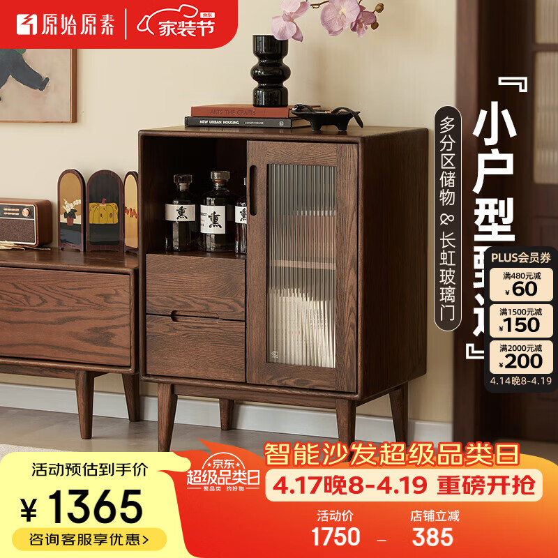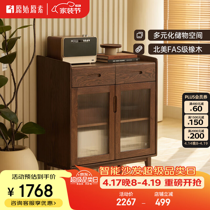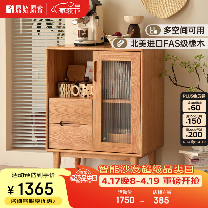 原始原素 实木餐边柜橡木简约客厅茶水柜移门厨房储物柜碗柜F8141 2抽1门餐边柜-原木色