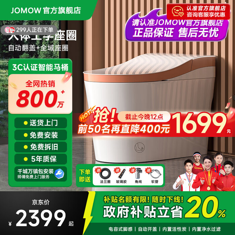 JOMOW智能马桶一体机无水压限制自动翻盖语音泡沫盾香薰轻音冲水坐便器 866标配【手动翻盖+全域座圈】 250/300/350/400mm 下单请备注