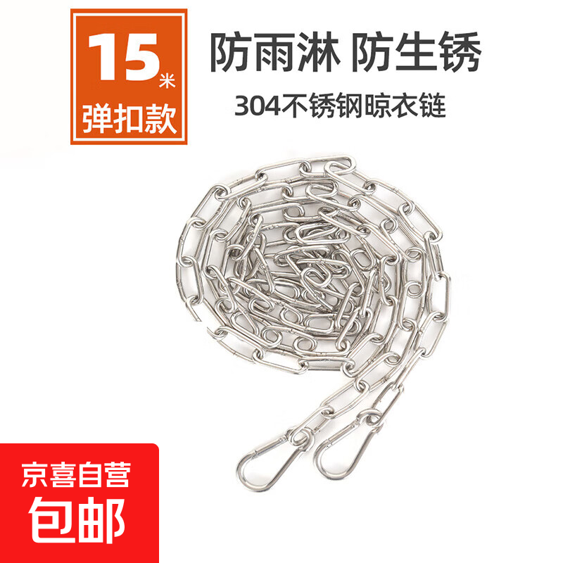 304不锈钢晾衣绳链条室外晒被子挂衣服凉衣链阳台绳子铁链钢丝绳 304晾衣链15米+弹扣2个