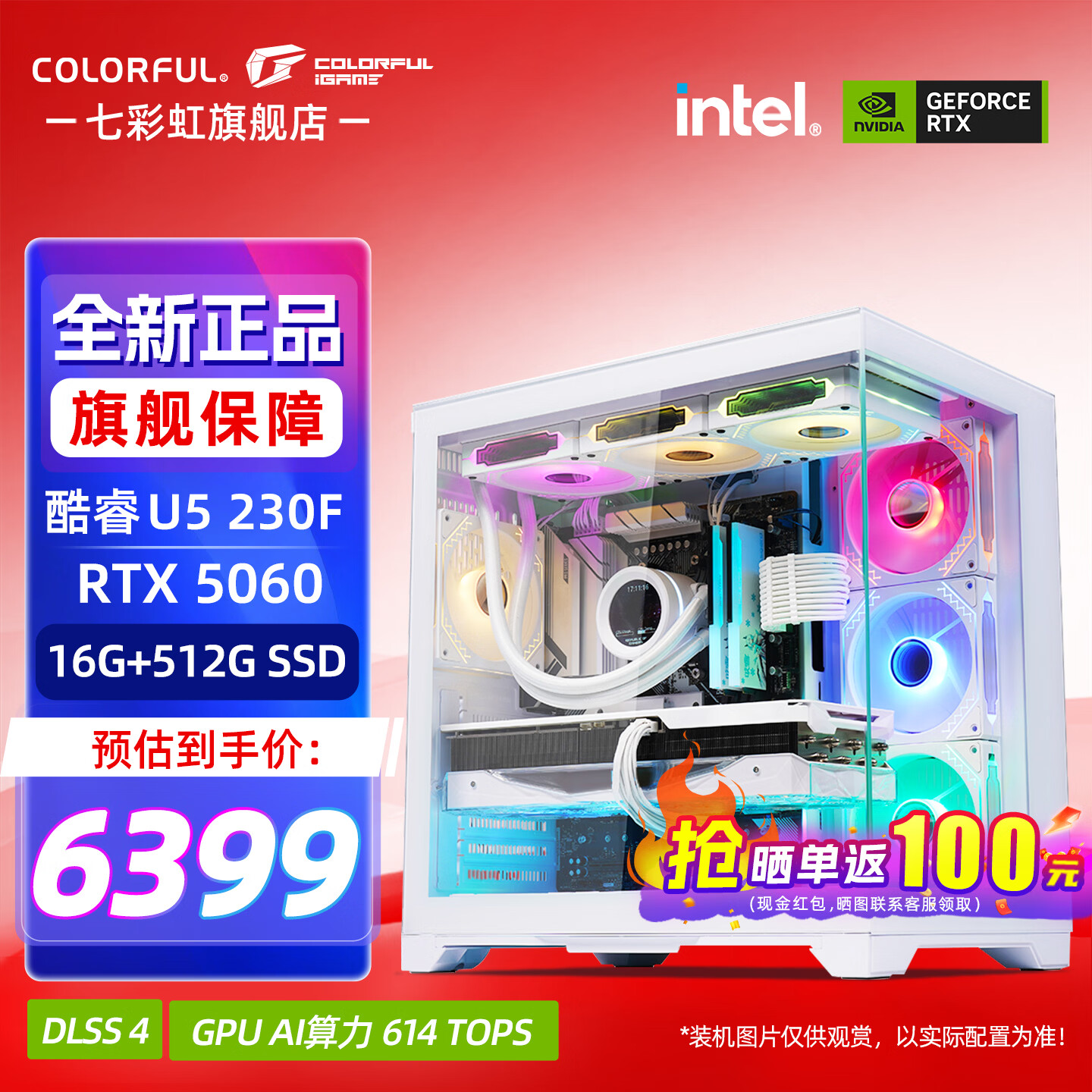 七彩虹(Colorful)酷睿15代U7 265KF RTX5060TI/5070TI/5080 5090D显卡 电竞游戏 龙虾AI设计台式电脑组装机 新品抢先版:U5 230F丨5060 官方全新保障